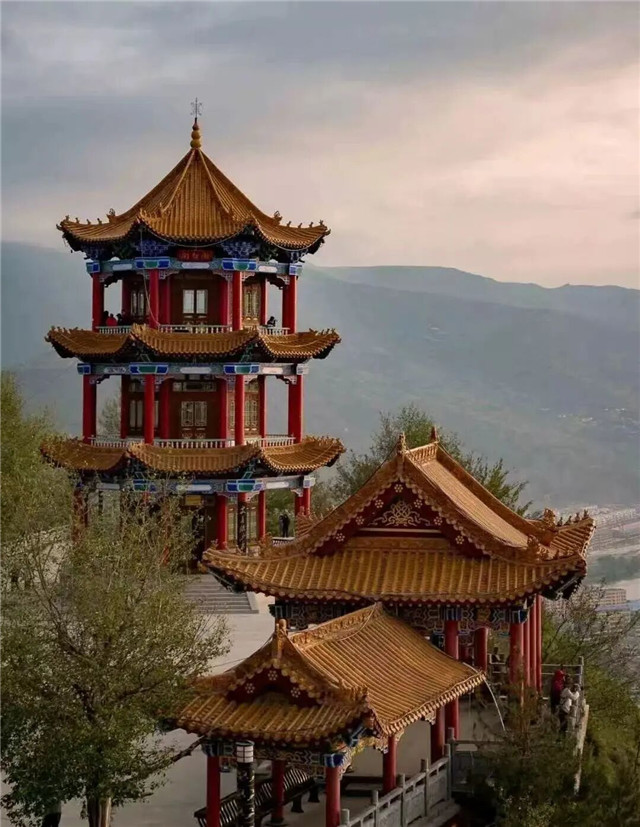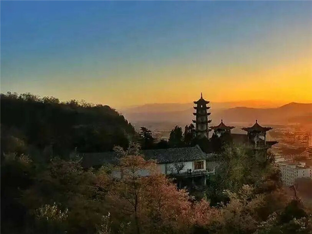 你會看到,定西的秋日天空,變得異常高遠(yuǎn)與湛藍(lán)。這份光影的浪漫,在岷縣二郎山尤為動人——山巔的開顏閣飛檐翹角,白日里襯著澄澈藍(lán)天,像從畫里走出來的景致;當(dāng)夕陽西下,溫暖的余暉先為二郎山的植被鍍上一層金芒,再漫過開顏閣的朱紅廊柱與雕花窗欞,將整座閣樓勾勒得愈發(fā)古樸璀璨。