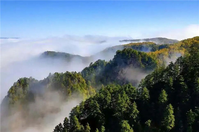 在貴清山,你會看到山巒仿佛打翻了調(diào)色盤。墨綠的松柏、火紅的楓葉、金黃的白樺,交織成一幅巨大的錦繡。而最動人的,莫過于繚繞在山腰的云海,它們靜靜地流淌,時而在斷澗仙橋下匯成一片白色的海洋,讓雄奇的山峰宛如仙境中的孤島,平添幾分仙氣與柔情。