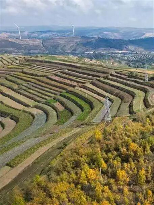 在隴中梯田,你會看到大自然最宏偉的幾何藝術(shù)。作物在不同的生長階段,呈現(xiàn)出豐富的色彩層次——有等待豐收的玉米地泛著的暖黃,有新生的冬小麥鋪開的嫩綠,還有土地本身厚重的赭石色。它們?nèi)缤蟮氐奈寰€譜,在高原的陽光下,奏響一曲沉默而恢弘的豐收序曲。