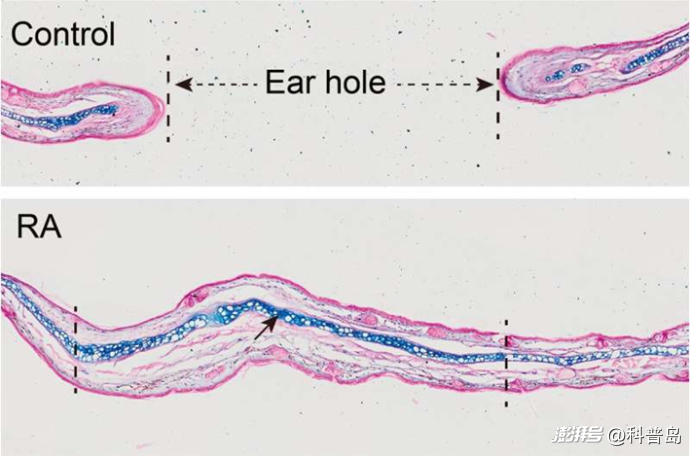 RA信號通路的激活,恢復(fù)了小鼠耳廓缺失的內(nèi)部結(jié)構(gòu),包括軟骨。(圖源:北京生命科學(xué)研究所)