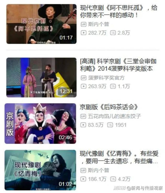彈幕網(wǎng)站上,網(wǎng)友二創(chuàng)的京劇版《哈利·波特》中,“誰想到保密人來選錯,詹姆奔地府,莉莉見閻羅”的京韻京腔搭配西方魔幻,讓人忍俊不禁。