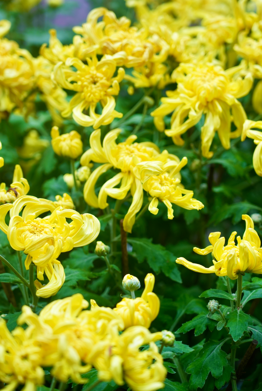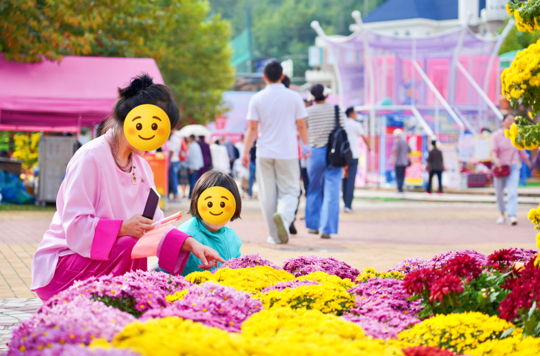 數(shù)千盆精品菊花爭奇斗艷,獨(dú)本菊、案頭菊、多頭菊等百余品種競相綻放,赤如烈焰、粉若云霞、白似霜雪,將園內(nèi)步道裝點(diǎn)成流動(dòng)的彩虹。穿梭于百菊之間,沉浸式感受“采菊東籬下”的詩意。