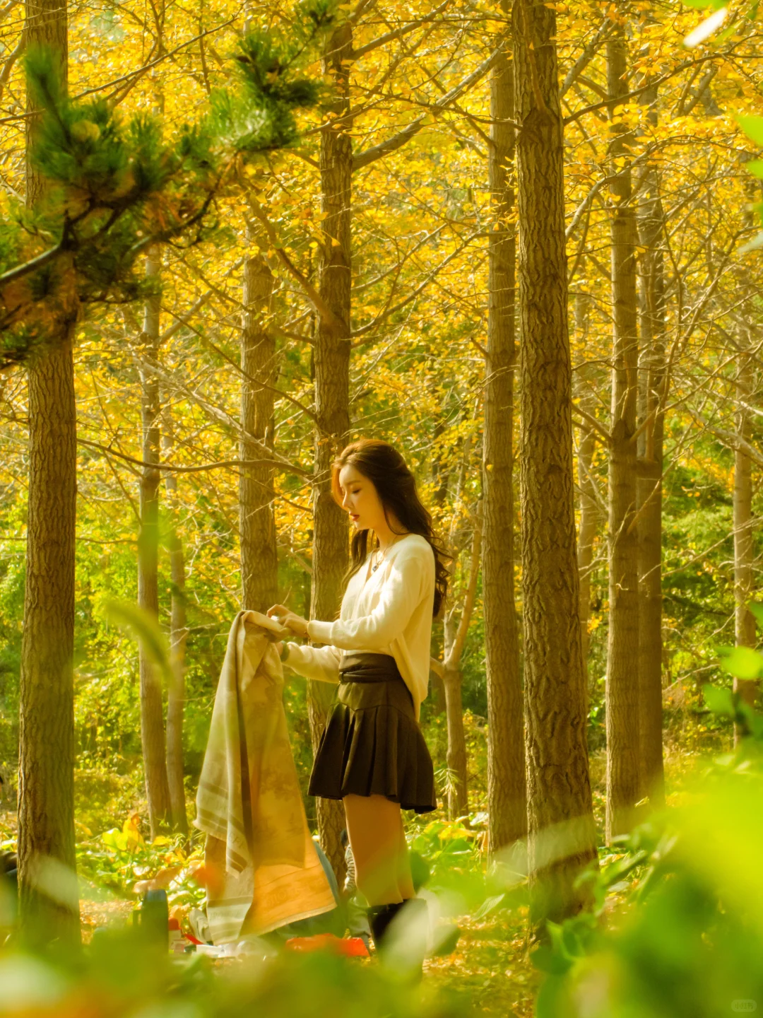 漫步林間,古亭飛檐與池塘游魚相映成趣,竹林小徑蜿蜒通幽,隨手拾起一片銀杏葉,便能感受到秋日沉淀的詩意。執(zhí)傘立于樹下,微風(fēng)起時(shí)衣袂翩躚,恍若穿越千年。
