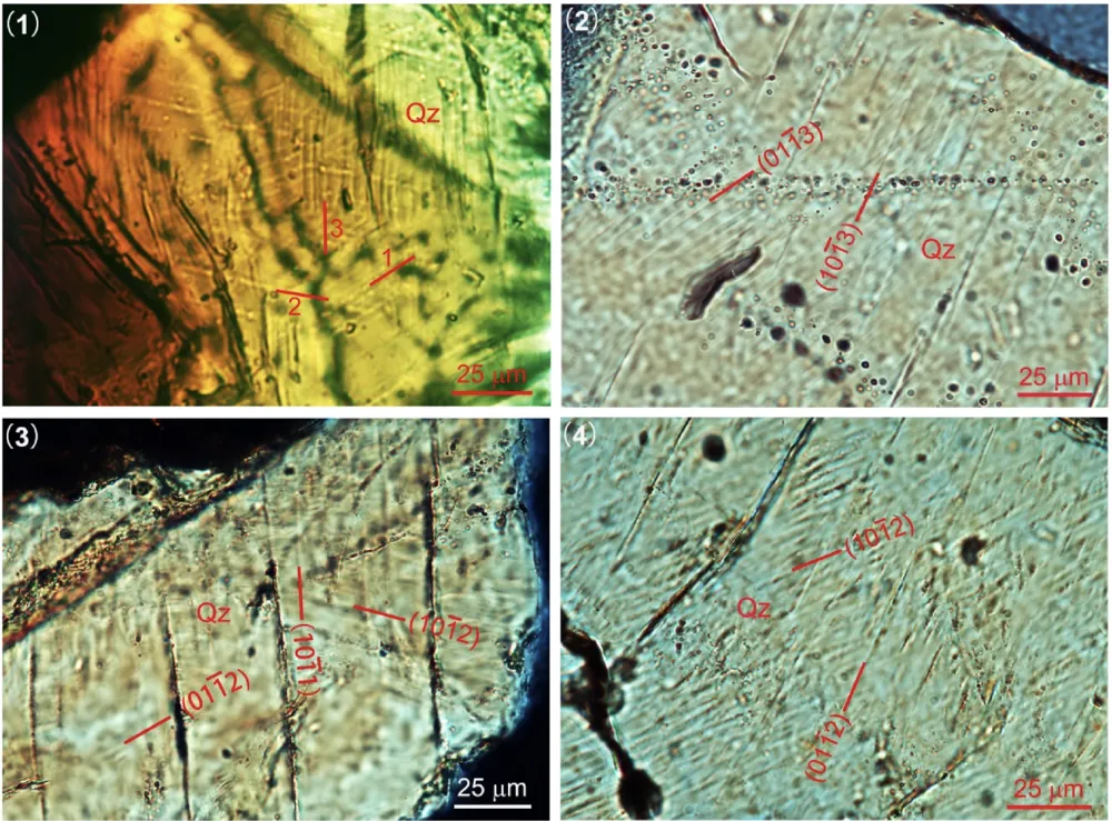 △石英中的面狀變形特征,它們是確認撞擊成因的“指紋”級證據(jù)。圖片引自論文