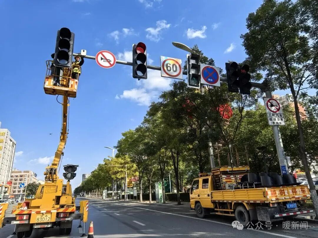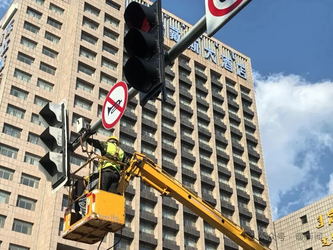 日前,記者來到東勝區(qū)鄂爾多斯大街華宇名門小區(qū)西側(cè)十字路口看到,工人們正操作吊車更換交通信號燈。升級后的信號燈盤不僅尺寸更大、亮度更高、視野更開闊,還具備了智能感知功能。