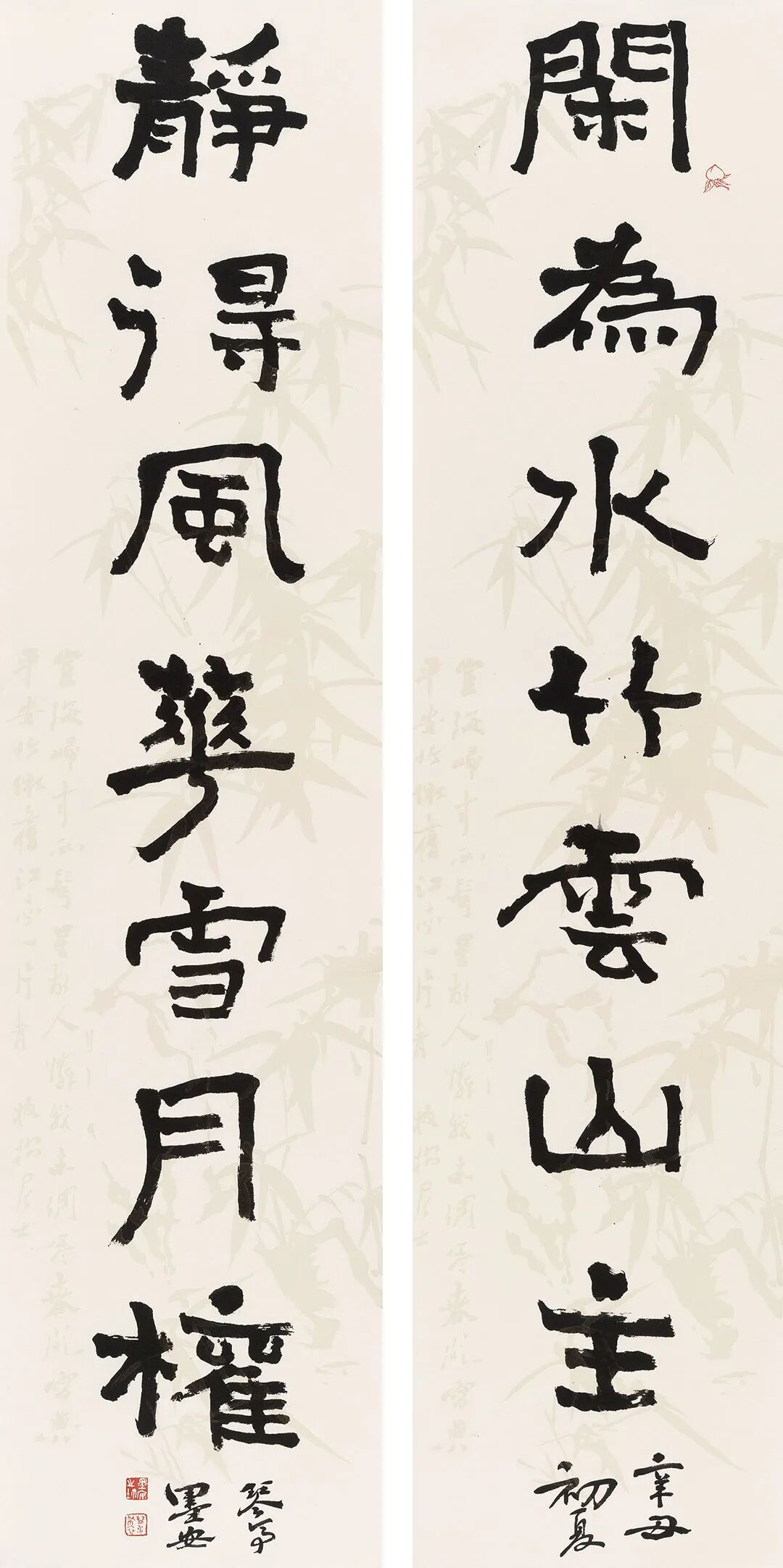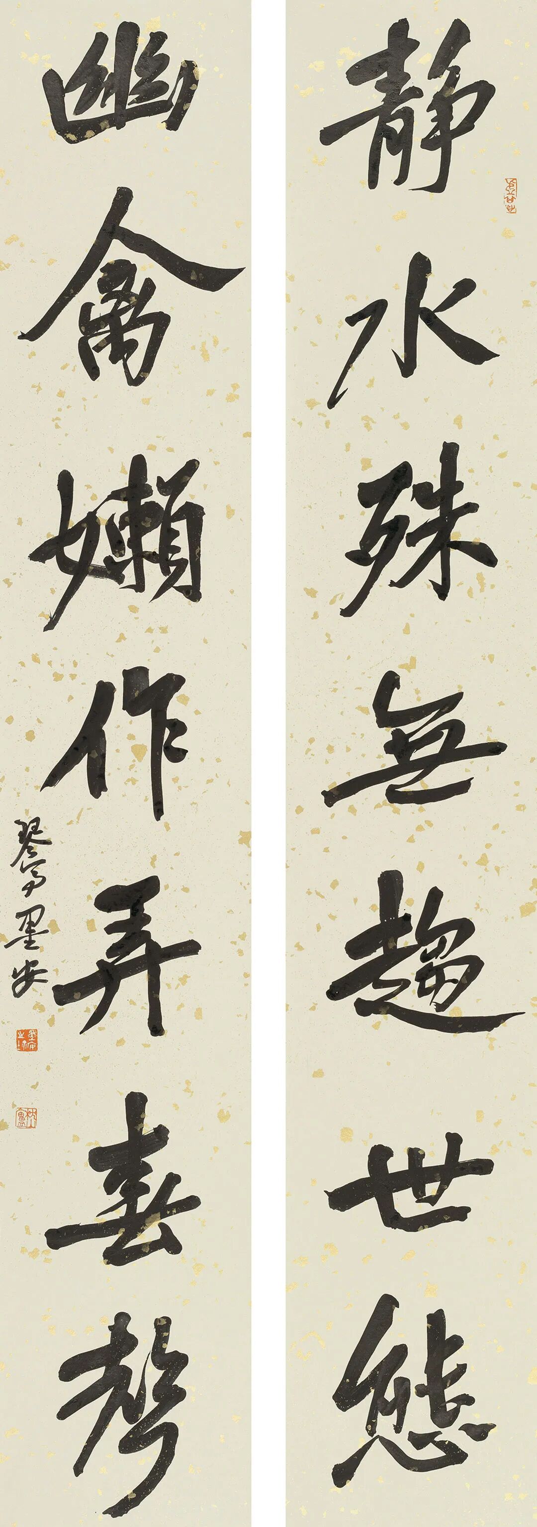 《靜水 幽禽》行書(shū)聯(lián)-138x24cmx2
