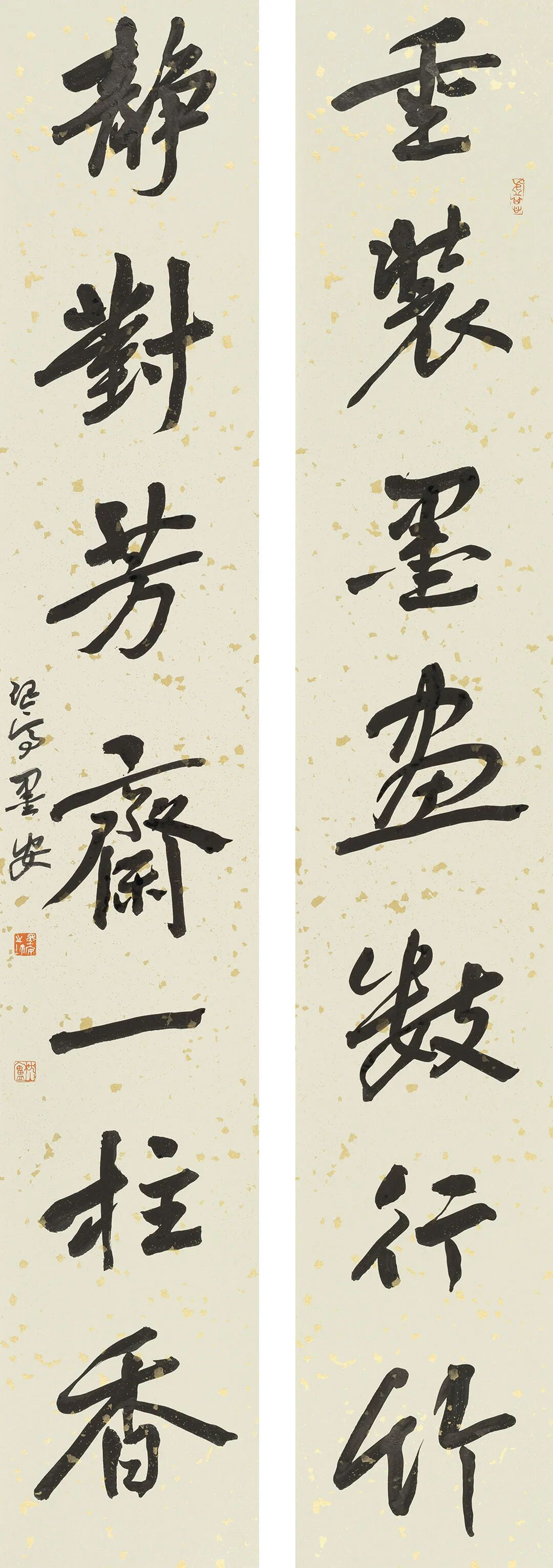 《重裝 靜對(duì)》行書(shū)聯(lián)-138x24cmx2