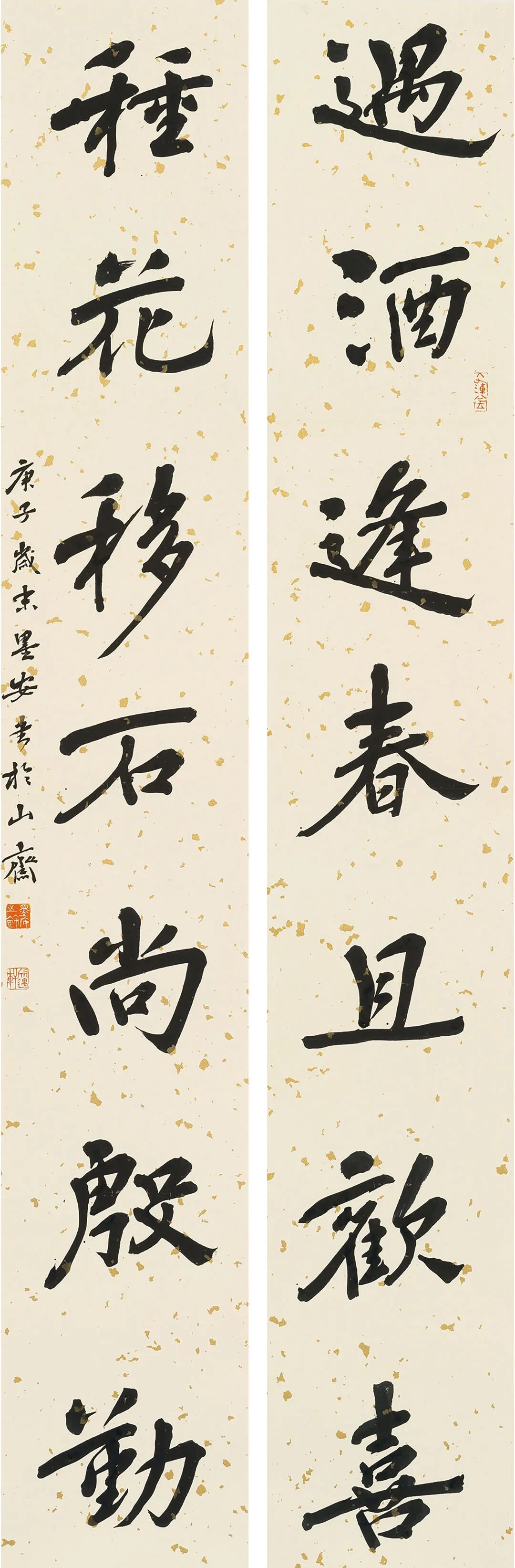 《遇酒 種花》行書(shū)七言聯(lián)-150x24cmx2