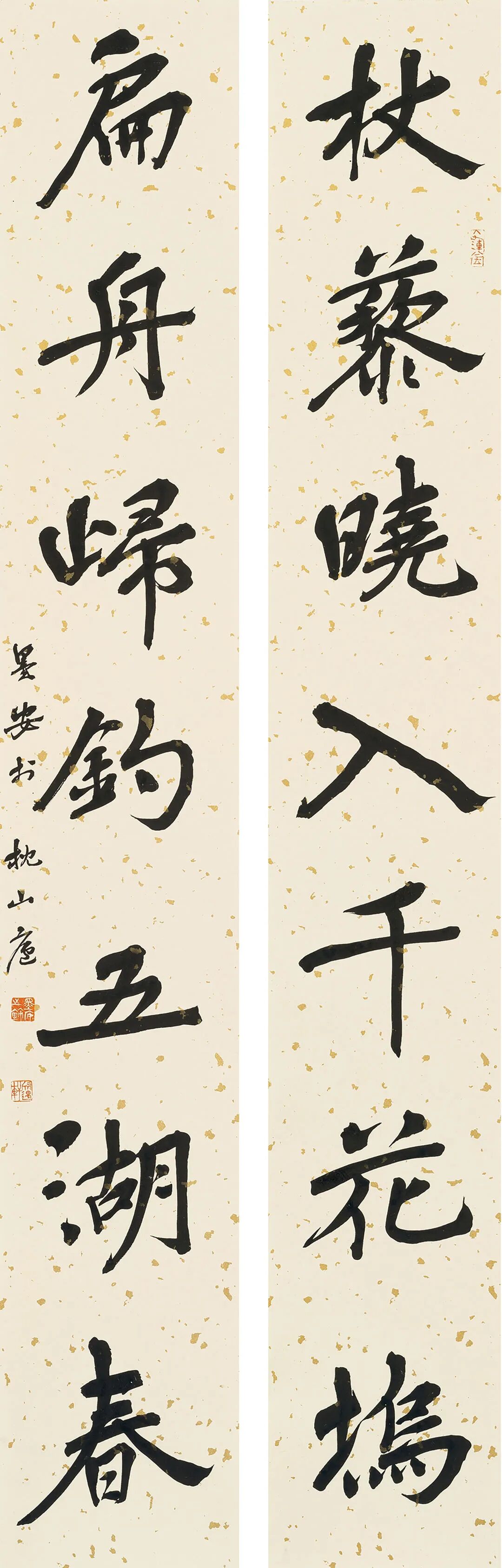 《杖藜 扁舟》行書(shū)七言聯(lián)-150x24cmx2