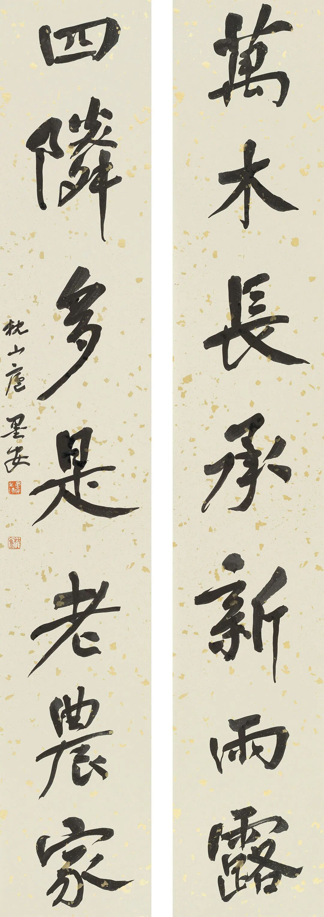 《萬(wàn)木 四鄰》行書(shū)聯(lián)-138x24cmx2