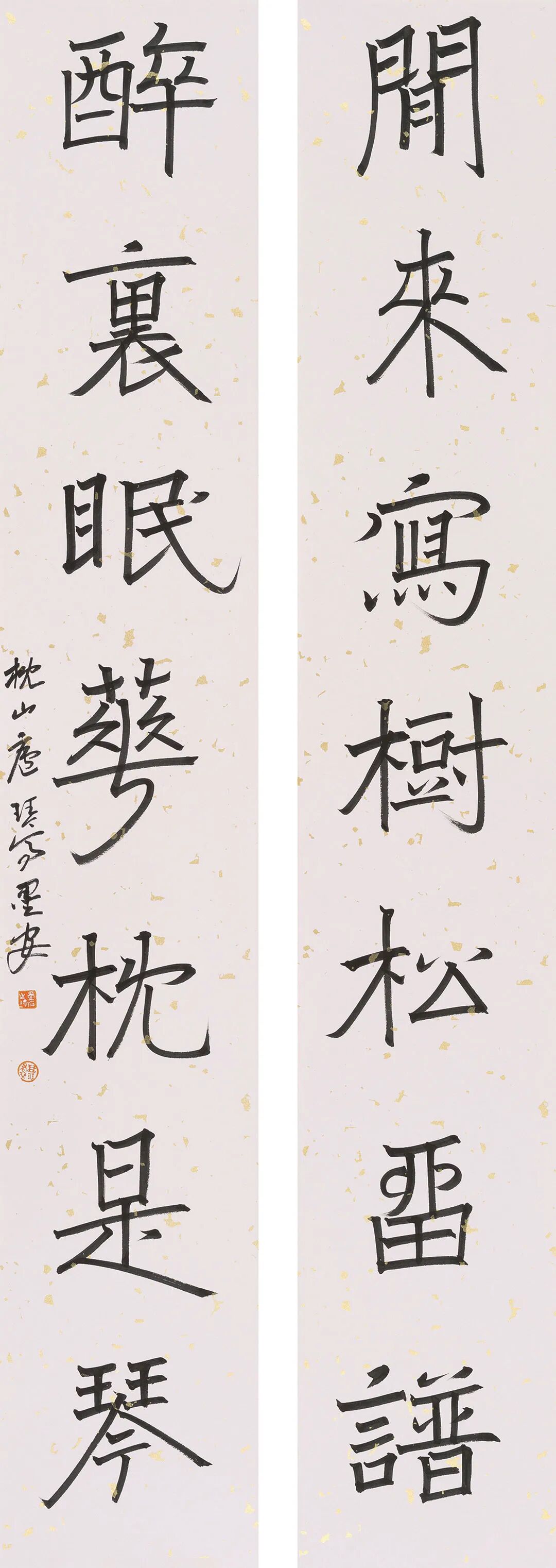 《閑來(lái) 醉里》楷書(shū)聯(lián)-138x24cmx2