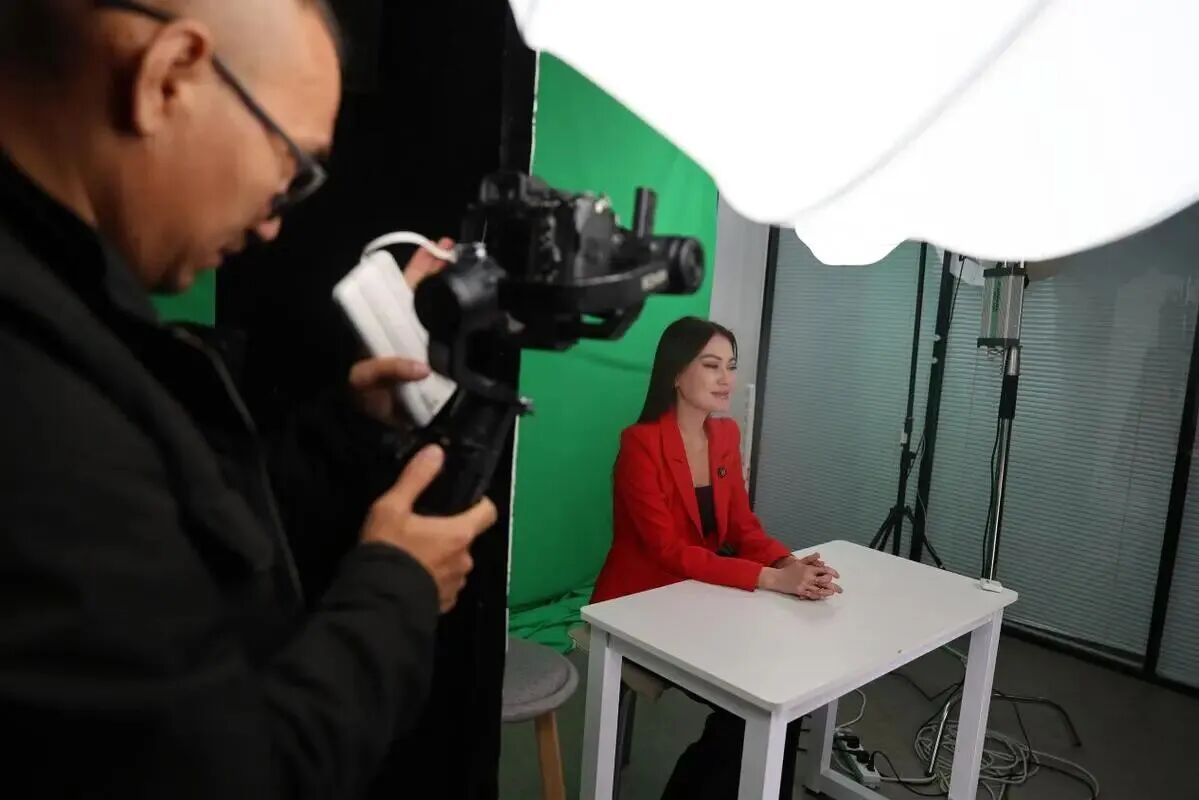 哈薩克斯坦新聞播音員Kolzhigit Ayaulym在體驗集思科技的數(shù)字人信息采集技術(shù)