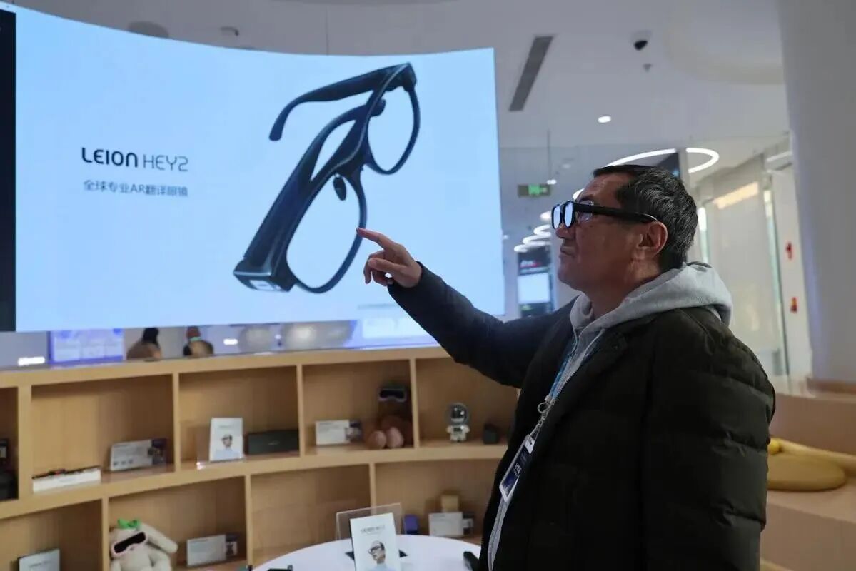 樂活體驗區(qū)通過智能終端和生活化產(chǎn)品,展示了人工智能技術(shù)如何融入日常生活。亮亮視野,是國內(nèi)AR賽道最早起步、技術(shù)布局最完整的企業(yè)之一。其推出的消費級翻譯眼鏡Leion Hey2通過光波導(dǎo)、聲學(xué)算法與低功耗設(shè)計的深度整合,將AR技術(shù)轉(zhuǎn)化為日常溝通工具。元蘿卜的國際象棋機器人、麥麥科技的農(nóng)業(yè)大模型等產(chǎn)品也在該區(qū)域展出。這些產(chǎn)品不僅體現(xiàn)了技術(shù)的前沿性,也為攝制組生動展示了人工智能技術(shù)貼近生活、服務(wù)社會的溫暖力量。