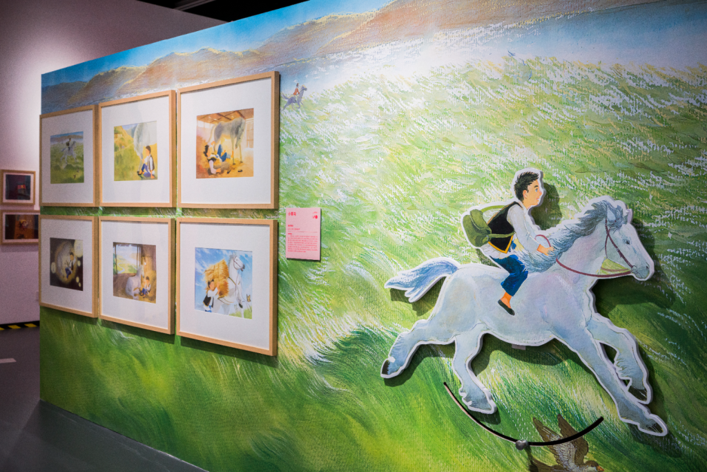 為讓孩子深度參與、沉浸式感受圖畫書的魅力,本次巡展在內(nèi)容呈現(xiàn)上突破傳統(tǒng)展覽模式,融合繪本內(nèi)容精心設(shè)計(jì)多項(xiàng)互動(dòng)裝置,打造“可看、可玩、可創(chuàng)”的親子體驗(yàn)場景:展覽截取圖畫書中的形象,打造成憨態(tài)可掬的氣模形象,家長與孩子可與其合影,定格溫馨親子瞬間;展廳內(nèi)圖書閱讀區(qū)整齊陳列著參展優(yōu)秀圖畫書,孩子可隨手取閱,享受沉浸式閱讀的治愈時(shí)光;在互動(dòng)墻前,孩子能通過“陪馬兒奔跑”“修月亮”等趣味互動(dòng),在動(dòng)手動(dòng)腦中收獲隱藏快樂;更可化身“小畫家”創(chuàng)作專屬作品,將自己的“大作”帶回家,成就感十足。