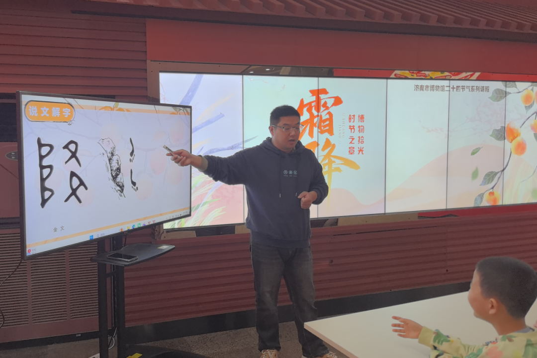 霜葉紅于二月花,秋光深處又逢霜。近日,濟(jì)南市博物館舉辦“霜降尋韻 文博拾秋”主題活動(dòng),帶領(lǐng)青少年走進(jìn)二十四節(jié)氣的詩意世界,在甲骨文解碼、物候科普與手工創(chuàng)作中,感受傳統(tǒng)節(jié)氣的文化溫度。