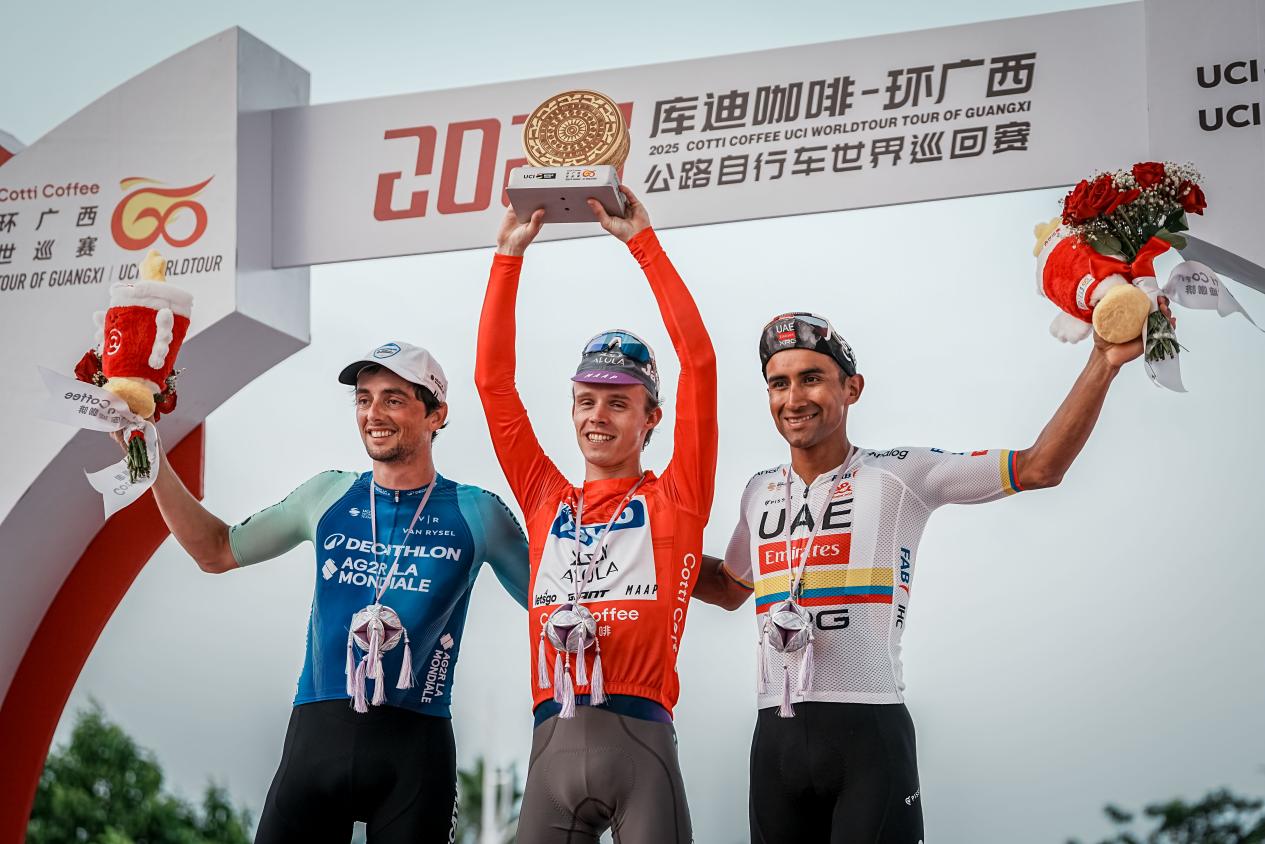 最終,法國沖刺手保羅·馬尼耶(速的奧快步車隊)以破紀(jì)錄的“單屆五勝”橫掃防城港、崇左-靖西等賽段,收獲沖刺王藍(lán)衫,成為環(huán)廣西歷史上最閃耀的明星。而總冠軍紅衫則歸屬杰科-埃爾奧拉車隊的保羅·達(dá)博,他在被譽(yù)為“皇后賽段”的宜州-弄拉賽段中憑借卓越爬坡能力鎖定勝局。