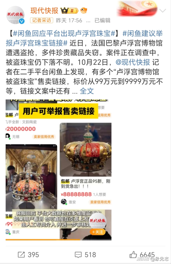 盧浮宮被盜,閑魚成“銷贓”渠道?