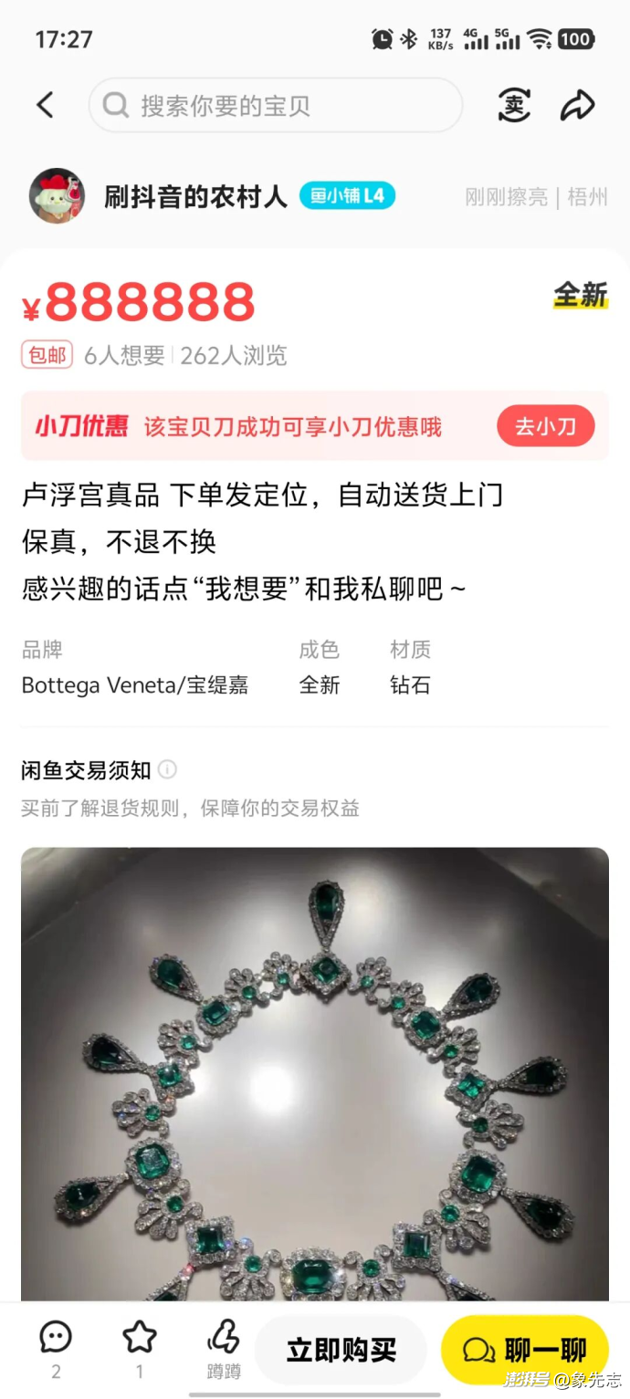 當(dāng)然,這些被掛上閑魚的盧浮宮珠寶交易信息不可能是真的,只是特定用戶選擇的整活或者起號(hào)手法。