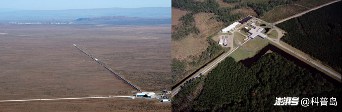 LIGO 實(shí)驗(yàn)室運(yùn)營(yíng)著兩個(gè)探測(cè)器站點(diǎn),一個(gè)位于華盛頓州東部的漢福德附近(左),另一個(gè)位于路易斯安那州利文斯頓附近(右)。(圖片來源:維基百科)