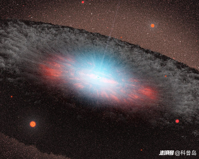 超大質(zhì)量黑洞從吸積盤中吸積的概念圖。(圖片來源:NASA)