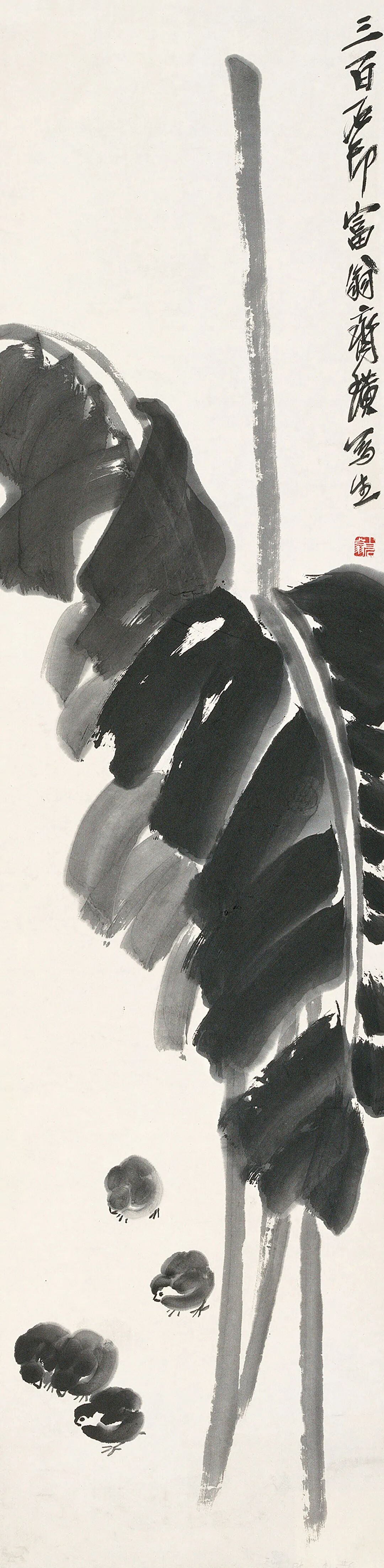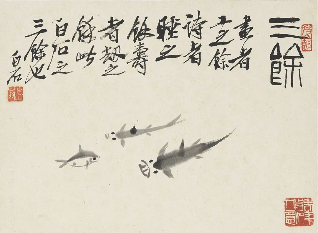 三家乃白石老人之藝術(shù)資糧,大半生進(jìn)食消化,其衰年變法后,打通了古今,打通了自己與心外,以一種愈老愈簡(jiǎn)愈純樸而成就了一代大師。