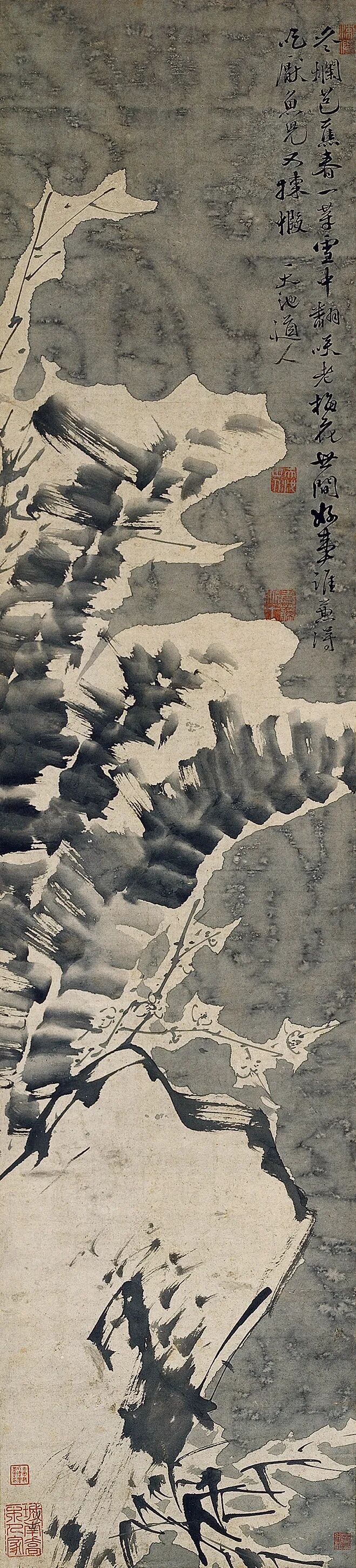 徐青藤,大寫意花鳥之開創(chuàng)者,用天分、性格與生命來(lái)作畫,人筆高度合一,顛狂不顧,人生如夢(mèng),如同一部痛快淋漓的悲喜劇,本色出演,一生未變,不化而化,而他不知有鏡頭有觀眾。其筆下,至繁而至簡(jiǎn),如孩童,滿屋子亂七八糟,一個(gè)簡(jiǎn)單的稚子。后學(xué)可師其技而非其心。