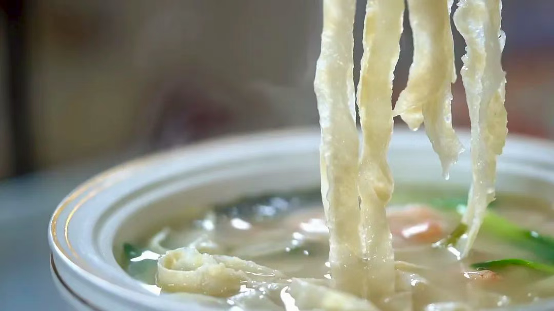 一碗小小的面條,看似簡單,實則口感爽滑,味道清爽,別有一番風(fēng)味,背后蘊藏著制作者極其用心的匠心精神,將對食物的熱愛都揉進一根根晶瑩剔透的面條里。