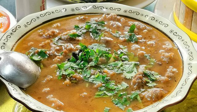 趙家羊湯除了需要新鮮的羊骨和羊肉,還得搭配上靈魂調(diào)料羊油與干紅大辣椒。制作這道湯的關(guān)鍵在于,選用優(yōu)質(zhì)的羊肉和清澈的水,經(jīng)過長時間不分晝夜的熬煮,確保湯的鮮美和濃郁。
