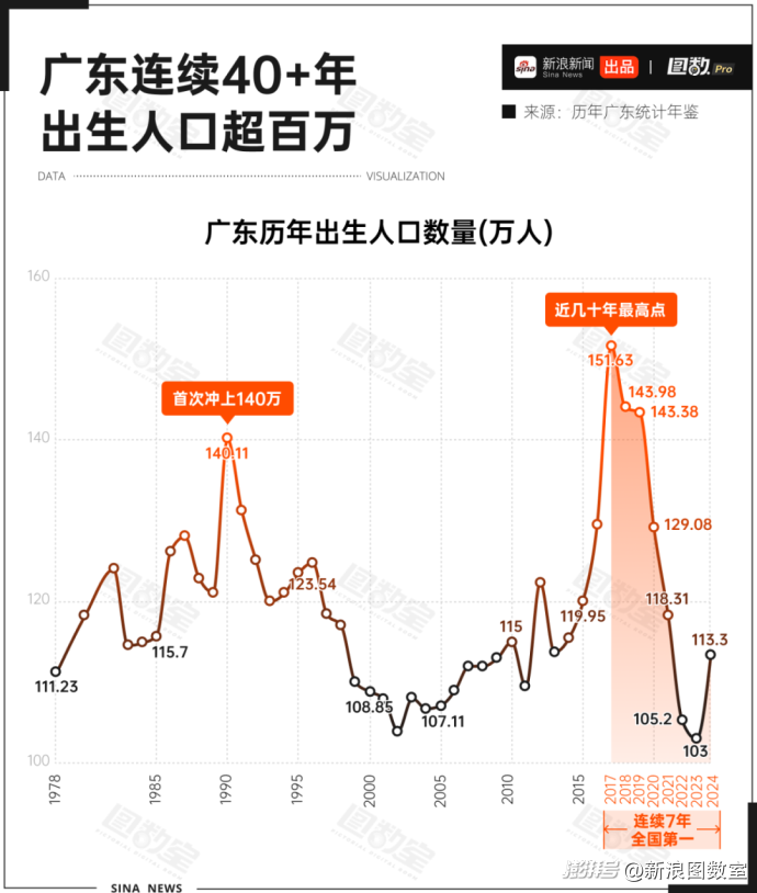 數(shù)據(jù)顯示,2024年廣東出生人口為113萬人,比上一年增加了10萬人,占出生人口954萬人的11.88%。也就是說,全國每10個(gè)新生兒,就有一個(gè)是廣東人。