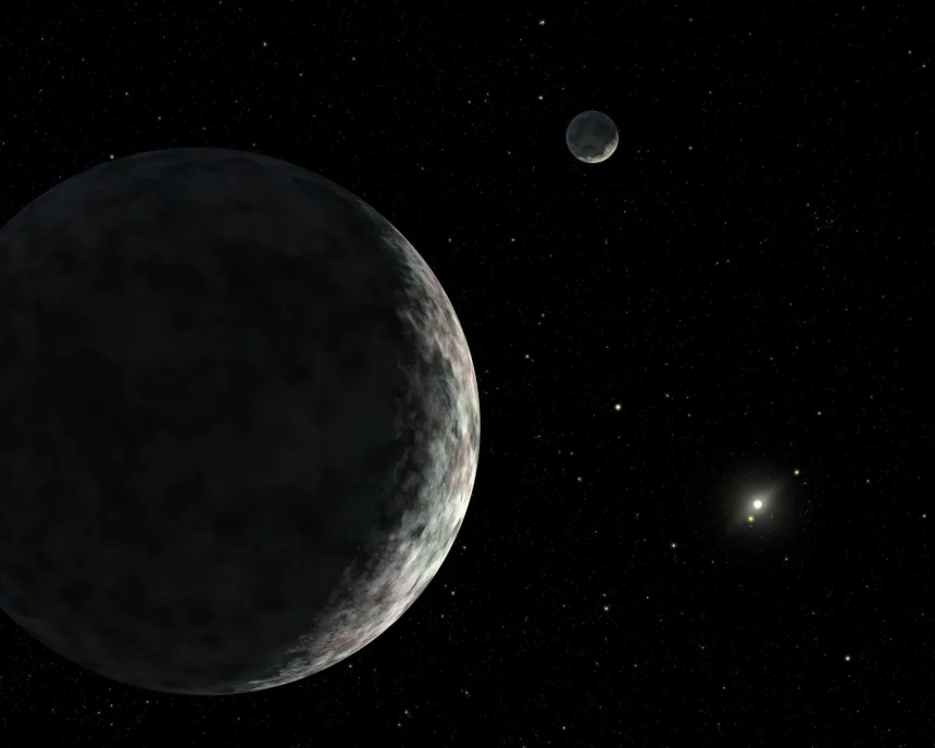 矮行星厄里斯及其衛(wèi)星迪斯諾米亞(藝術(shù)圖)。圖片來源:NASA官網(wǎng)/加州理工學(xué)院噴氣推進(jìn)實(shí)驗(yàn)室