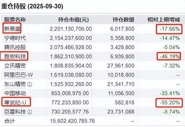 既然估值不再便宜,三季度,睿遠成長價值對大部分重倉股進行了減持,其中新易盛、寧德時代、勝宏科技、寒武紀減倉幅度較大。