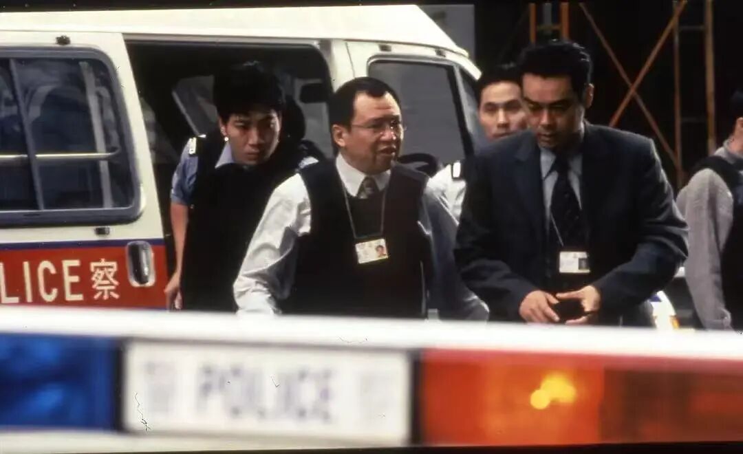 ▲ 1999年電影《暗戰(zhàn)》,他演總督察黃啟發(fā),站在主角劉青云旁邊。