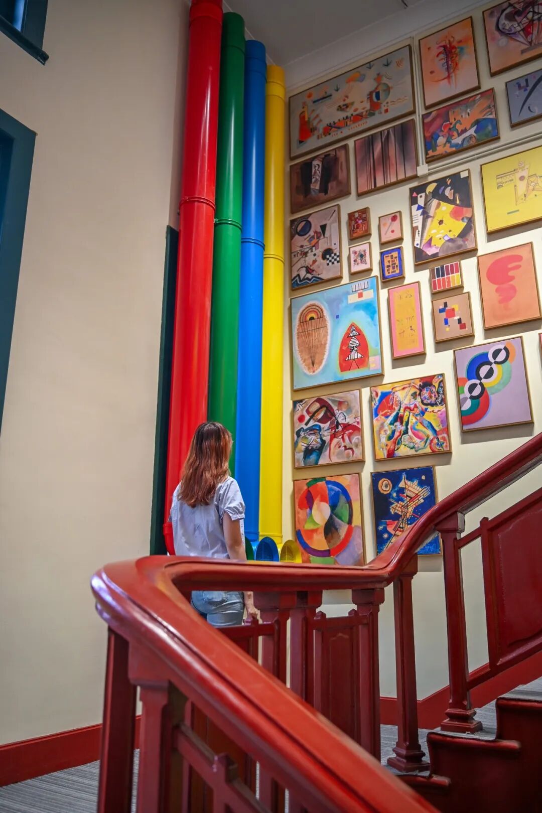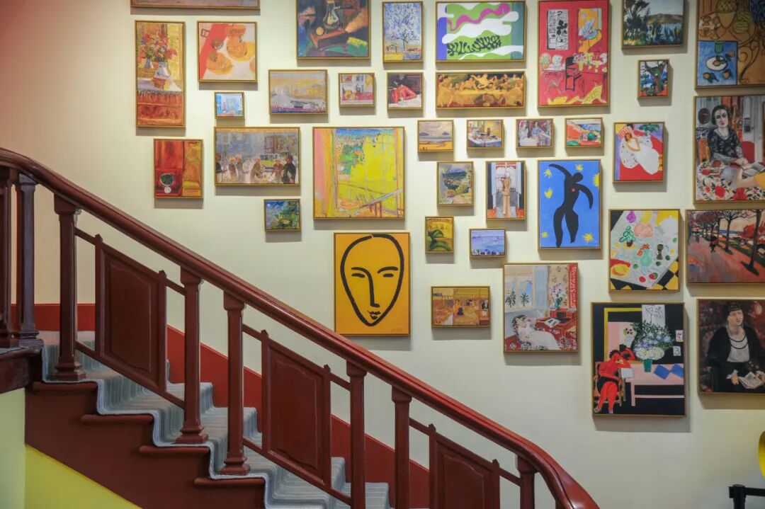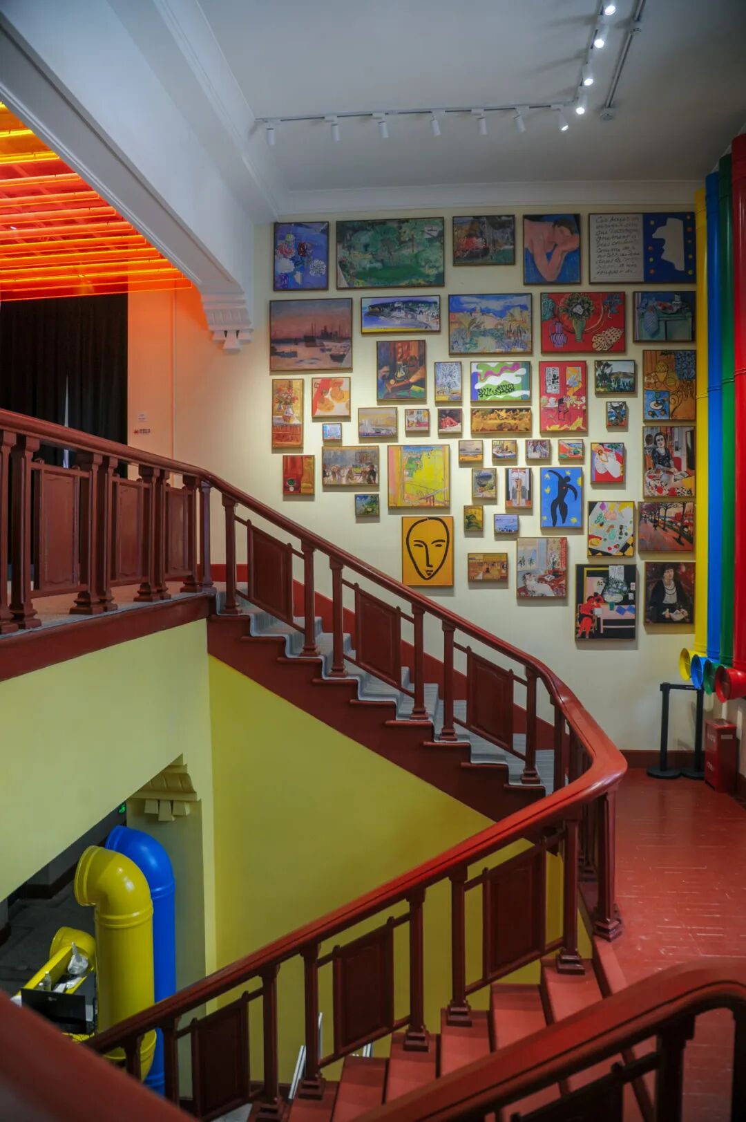 走進(jìn)百年大師畫廊,就像穿越時(shí)光,主樓梯旁百幅大師作品靜靜“訴說”百年藝術(shù)故事。