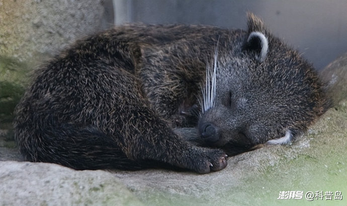 這個(gè)看起來(lái)憨憨的,長(zhǎng)得既像熊又像貓,既像浣熊又像樹懶的四不像就是熊貍。它有著濃密的黑色毛發(fā),壯實(shí)的身體,幾對(duì)長(zhǎng)長(zhǎng)的白色胡須,和一個(gè)能夠自由卷曲的大尾巴,耳朵背面還有一撮標(biāo)志性的黑毛。
