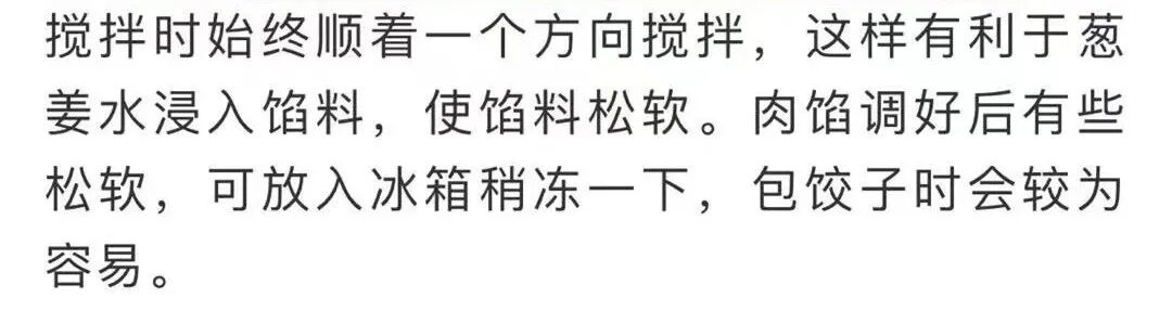 通常做包子、餃子的肉餡都要打進(jìn)一些水,以便使肉餡軟滑口感好,即用清湯或花椒泡的水,向著一個(gè)方向攪,攪到“上勁”餡料成團(tuán)不散。但韭菜餡的就不要打水了,水分很多,又沒(méi)有擠水的可能,所以肉餡中就不用打水了。