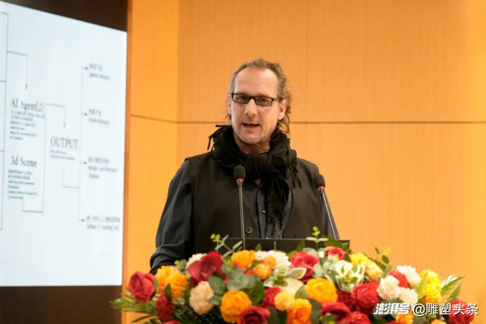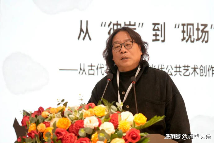 景育民就“當(dāng)代公共藝術(shù)的跨界思維”發(fā)表演講。他指出,公共藝術(shù)已拓展至城市更新、鄉(xiāng)村建設(shè)等領(lǐng)域,強(qiáng)調(diào)跨媒介與技術(shù)創(chuàng)新,推動(dòng)公共藝術(shù)從實(shí)體走向虛實(shí)結(jié)合,并呼吁教育模式向跨界教學(xué)轉(zhuǎn)型。
