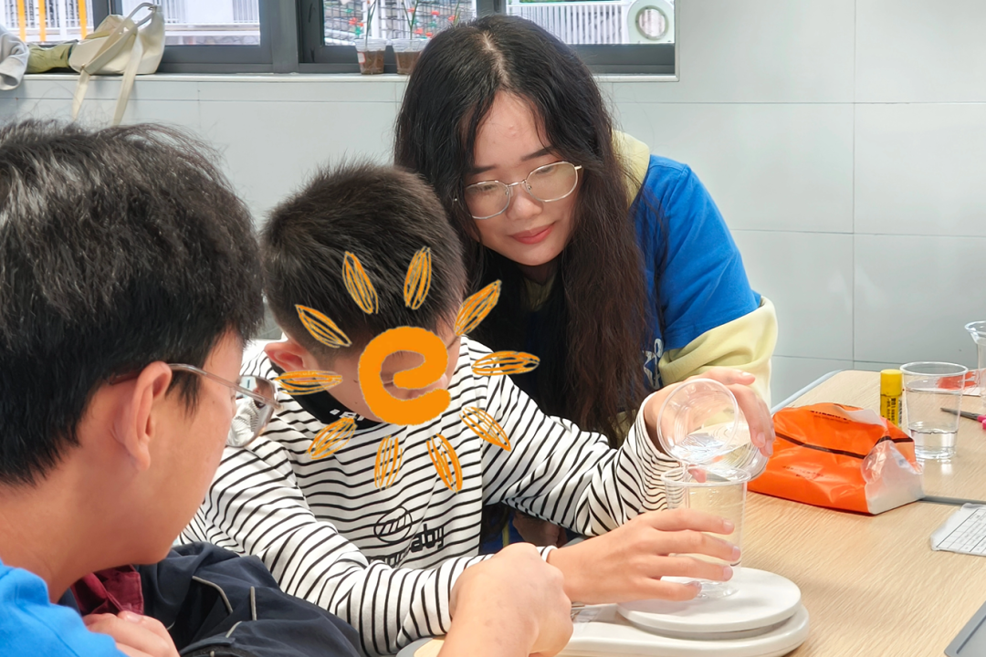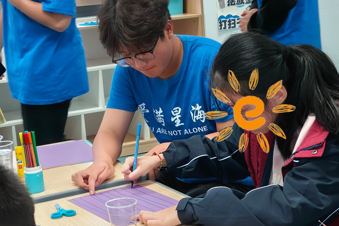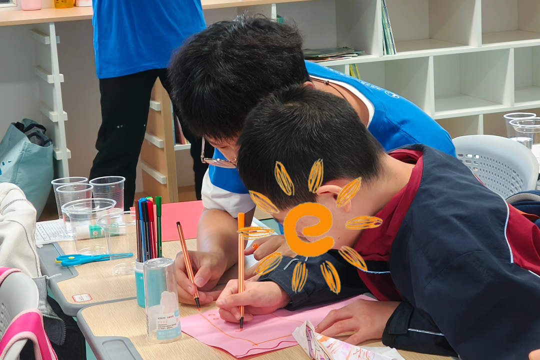 手工制作環(huán)節(jié),志愿者與孩子們一對一結(jié)對,耐心地教他們裁剪、粘貼。從創(chuàng)意構(gòu)思到作品成型,志愿者全程陪伴,不斷鼓勵孩子們大膽想象。當(dāng)孩子們在志愿者幫助下完成自己的“紙質(zhì)飲品”作品,并高高舉起,臉上綻放出燦爛笑容時,這份自豪與喜悅,無疑是對志愿者付出的最好回報。