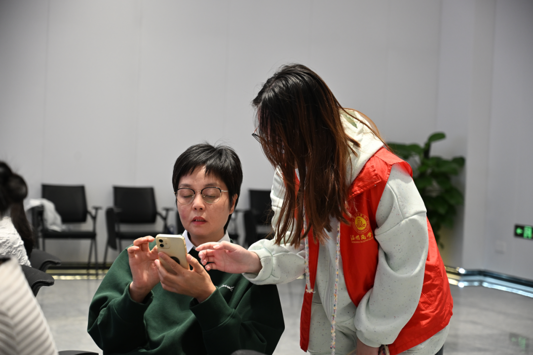 理論學(xué)習(xí)后,志愿者們化身“AI向?qū)А?,為叔叔阿姨們提供“一對一”實操指?dǎo)。面對操作生疏的叔叔阿姨,志愿者們耐心引導(dǎo),消除他們的畏難情緒。當(dāng)老照片在AI技術(shù)助力下變得清晰,當(dāng)文案順利生成躍然屏上,這不僅是一次技能傳授,更是一場跨越數(shù)字鴻溝的溫情接力。