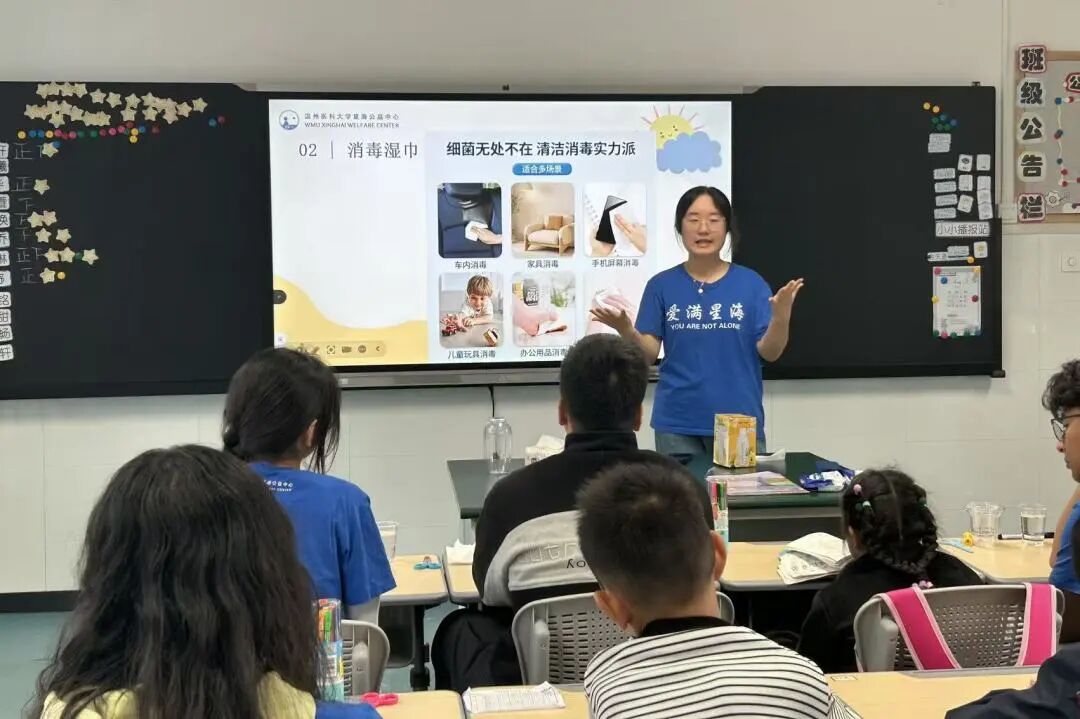 在溫州市特殊教育學(xué)校,“愛心專列號”的志愿者們開展“星光飲坊”主題活動?;顒右潦迹驹刚邆円浴靶l(wèi)生小課堂”為切入點,通過播放生動有趣的動畫短片,并輔以手把手教學(xué),幫助孩子們掌握正確的七步洗手法。
