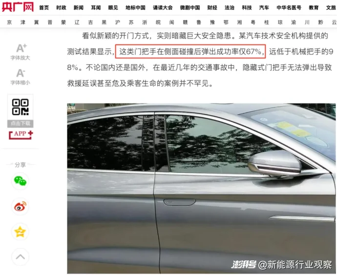這些設(shè)計原本是為了降低風(fēng)阻、提升續(xù)航,但實際省電效果微乎其微——可能僅能增加幾公里續(xù)航,卻要以犧牲安全性為代價。當(dāng)汽車設(shè)計只為參數(shù)服務(wù)而不為生命讓路時需要反思:這樣的技術(shù)創(chuàng)新是否已經(jīng)偏離了正確的方向?