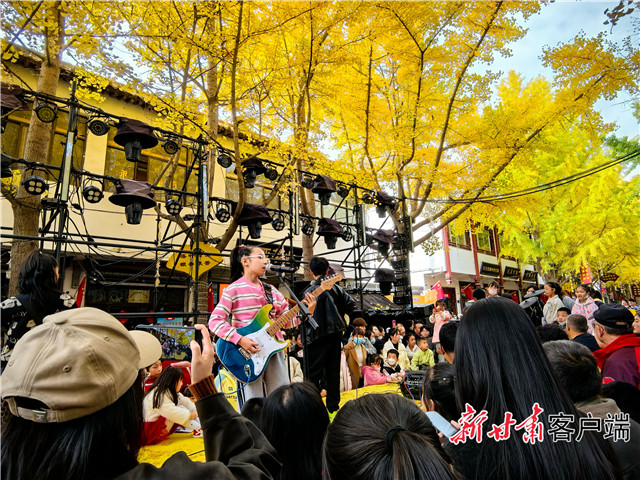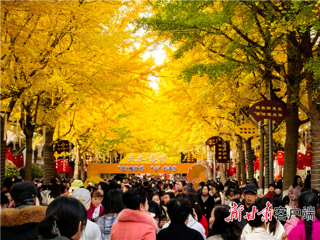 本屆文旅周以“‘銀’客天下·‘杏’福秦州”為主題,活動將持續(xù)至16日。記者在現(xiàn)場看到,青年北路兩側(cè)的銀杏樹已披上“金衣”,工作人員在枝丫間懸掛印有秦州文化元素的詩詞燈條,夜間金黃投光燈與LED輪廓燈點亮街道,形成“白日賞葉、夜晚觀燈”的雙重景觀。