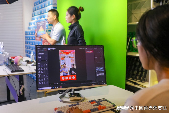 圖為山東青島一家飲品企業(yè)直播間內(nèi),帶貨主播正在講解產(chǎn)品特性和促銷措施。(圖片由CNSPHOTO提供)