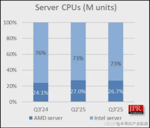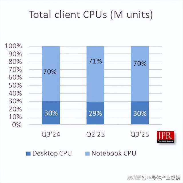 Jon Peddie Research 報(bào)告稱(chēng),全球客戶(hù)端 CPU 市場(chǎng)連續(xù)三個(gè)季度擴(kuò)張,2025 年第三季度環(huán)比增長(zhǎng) 2.2%,而服務(wù)器 CPU 出貨量同比增長(zhǎng) 13.6%。