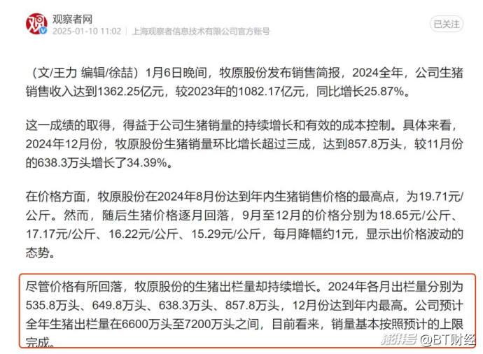 牧原股份財(cái)報(bào)顯示,2025年前三季度營(yíng)業(yè)收入為1117.9億元,同比增長(zhǎng)15.52%;歸母凈利潤(rùn)為147.79億元,同比增長(zhǎng)41.01%,基本每股收益2.74元。