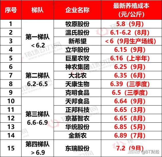 作為頭部企業(yè),牧原股份的成本控制極為出色,據(jù)BT財(cái)經(jīng)不完全統(tǒng)計(jì),目前牧原、溫氏、新希望等15家上市豬企平均養(yǎng)豬成本為6.44元/斤,五成企業(yè)成本低于6.5元/斤。其中成本最低的是牧原股份,牧原股份憑借5.8元/斤的極致成本,已率先闖入“5元區(qū)間”,成為行業(yè)新標(biāo)桿。