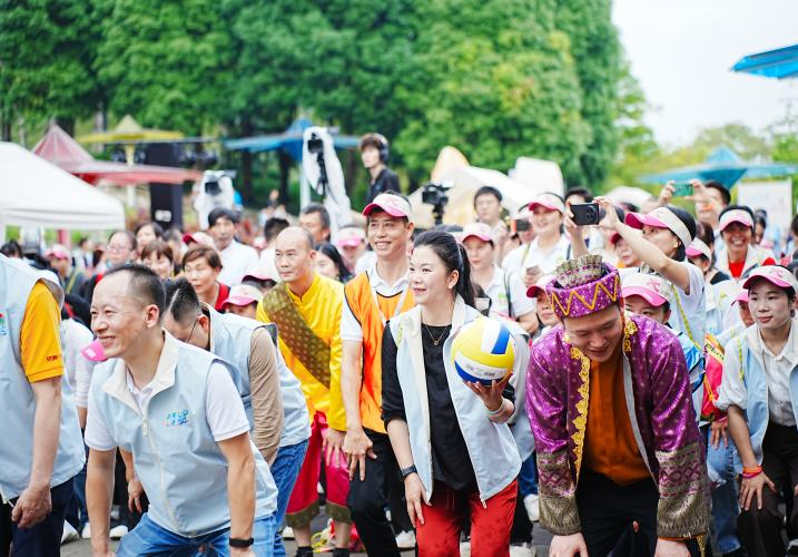 活動(dòng)現(xiàn)場(chǎng),項(xiàng)目組設(shè)置了保齡球等各類體育趣味游戲與參與群眾互動(dòng)。在途中還設(shè)置了“加油站”健康試飲點(diǎn)、“能量場(chǎng)”等趣味互動(dòng)區(qū)及打卡點(diǎn)。每一位完成健步走的參與者獲得一塊紀(jì)念獎(jiǎng)牌,前三名還獲得女排奧運(yùn)冠軍張娜簽名排球。豐富多彩的活動(dòng)讓參與者在游戲中學(xué)習(xí)健康知識(shí),在揮灑汗水中感受運(yùn)動(dòng)力量,在秀美風(fēng)景中領(lǐng)略文化魅力。