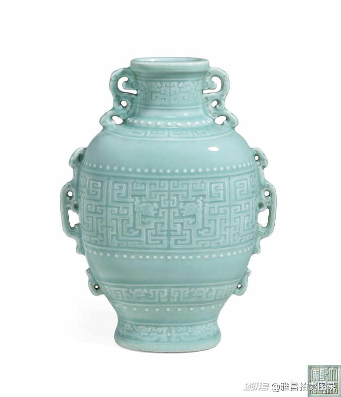 清乾隆 粉青釉模印夔龍紋雙耳扁壺