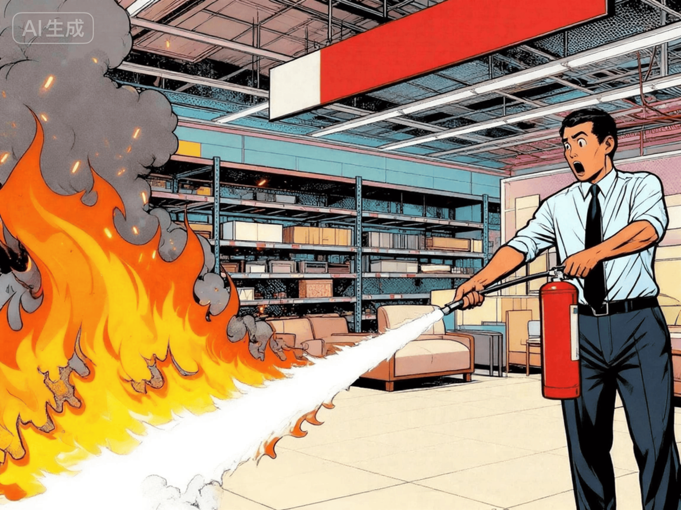 2024年初,某家居商場(chǎng)物業(yè)經(jīng)理張先生在組織商場(chǎng)消防演練時(shí)發(fā)現(xiàn),面對(duì)眼前燃起的大火,新購(gòu)滅火器噴出的干粉不僅無法有效滅火,反而起到助燃的效果。