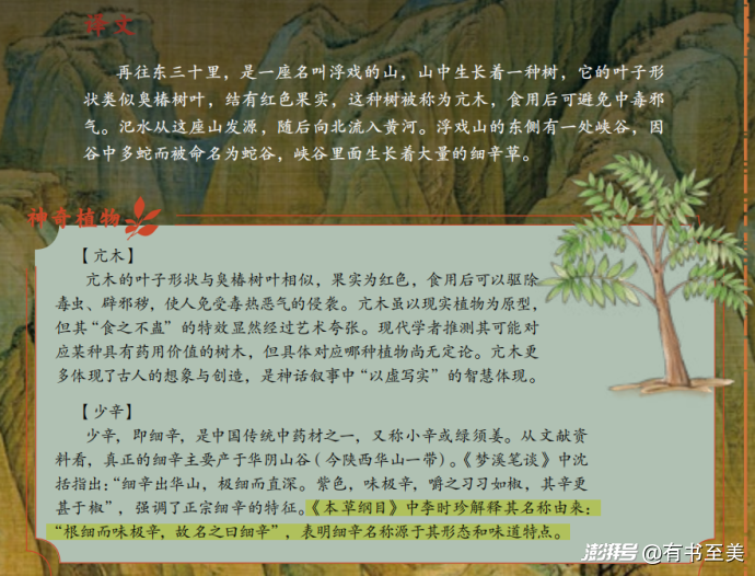 自然:將《山海經(jīng)》中的神奇植物與《本草綱目》建立聯(lián)系,解釋其名字由來、形態(tài)、特點(diǎn)。