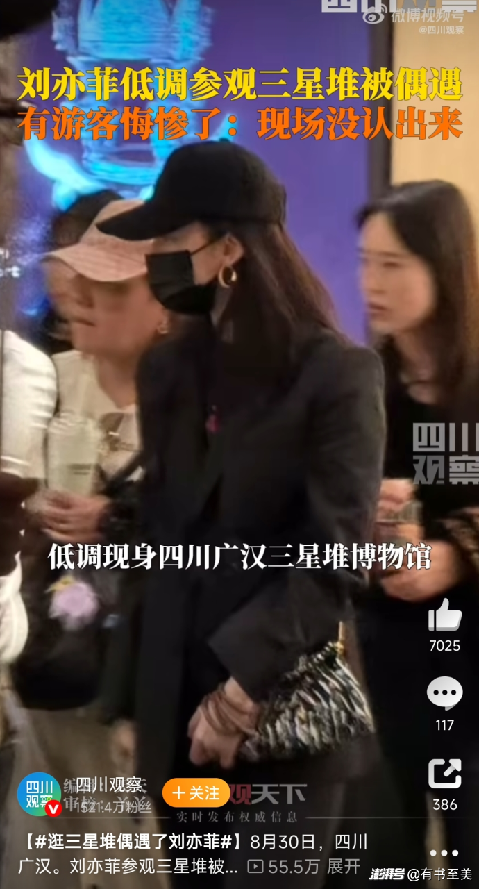 前不久,有網(wǎng)友在三星堆博物館遇到了劉亦菲。雖然戴著帽子和口罩,但還是氣質(zhì)出眾,一眼就看出是大美女!